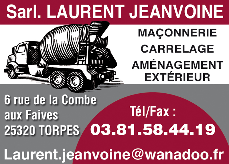JEANVOINE Laurent Voir publicité ZA - 25 route de Grandfontaine - 25320 Torpes
