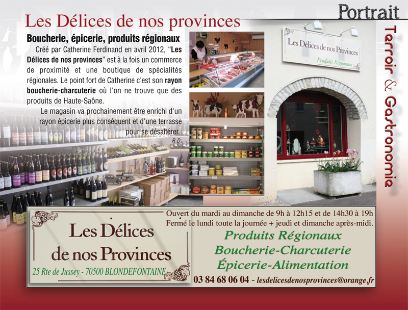 À signaler : "les délices de nos provinces" commerce alimentation et spécialités régionales Tél 03 84 64 06 04